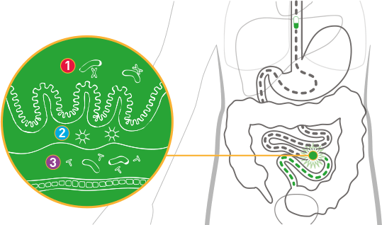 VIVOTIF protects against Salmonella Typhi by mimicking the response to natural infection and stimulating local, cellular and systemic/humoral immunity 2-5